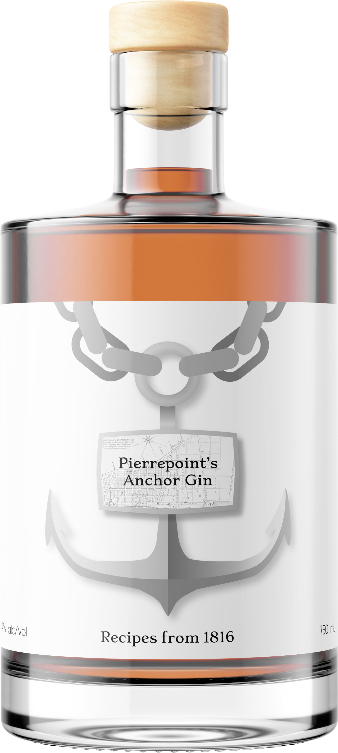 John Curtin from Albany Distilling Company asked to design a bottle of 'Anchor Gin' by Hezekiah Pierrepont. The 'Anchor Gin' was from the East River in Brooklyn Heights using Pierrepont's original recipe. Of the total four bottles, the first two were inspired by anchor, and the other two were made by mixing images of Brooklyn Heights from the present and the past to visualize an image of standing in the present and looking back at the past.